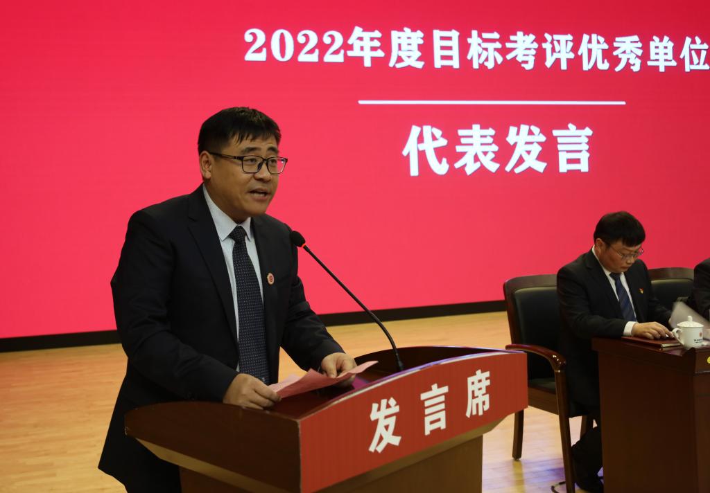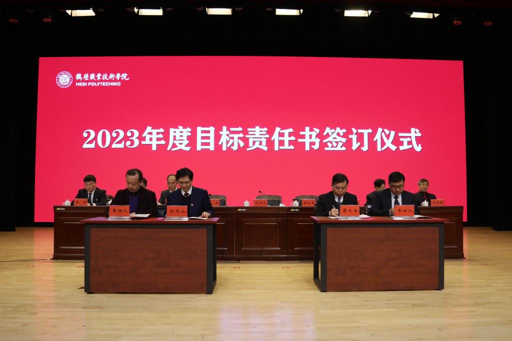 郎付山发表讲话,充分肯定了2022年公司党建工作与事业发展成效,并就今年公司工作提出三点意见:一是科学研判形势,坚定内涵式高质量发展的信心。当前是公司最有实力的时期,也是离我们实现梦想最近的时期。我们面临着弥足珍贵的机会,也面临着前所未有的挑战。我们决不能不为所动,绝不能佛系躺平,唯有坚定信心、舍我其谁,唯有踔厉奋发、勇毅前行。二是盯紧目标任务,明确内涵式高质量发展的方向。2023年是学习贯彻党的二十大精神的开局之年,也是公司发展转型升级、提质增速的关键一年。今年工作的主线是“135”工程,要准确理解三者之间的关系,在提高认识中明确内涵式高质量发展这一办学定位,把握好未来公司发展关于争创国家级“双高”校、申办职业教育本科专业、申建本科院校的三大目标和实施人才强校、质量立校、文化兴校、创新驱动、党建引领五个办学路径;实施人才强校战略,明确高层次人才招聘计划,发挥高层次人才示范引领作用,用人才带动一个团队,以团队带动我们的专业建设,为公司带来更多新鲜的气息和活力;实施质量立校战略,瞄准争创国家级“双高”校、申办职业教育本科专业、申建本科院校的遴选条件和标准,举全校之力强力推进,争取更多国家级的标志性成果,不断提高公司办学质量和水平;实施文化兴校战略,统筹制定提升公司文化形象的方案,下大气力抓好文化品牌建设,加强外宣工作,讲好鹤院故事,传播正能量,弘扬新风气;实施创新驱动战略,进一步增加科研经费投入,完善科研奖励配套政策,在大幅提高科研课题立项结项的数量和质量上下功夫,进一步提高公司科技创新服务能力;实施党建引领战略,深入落实新时代党的建设总体要求,加强党的政治、思想、组织、作风、纪律建设,把制度建设贯穿其中,不断提升公司各级党组织政治功能组织功能,不断增强凝聚力战斗力,驰而不息推进全面从严治党向纵深发展,引领公司事业实现跨越式发展。三是着眼八个抓手,务求内涵式高质量发展的实效。要突出抓理论学习强素质,抓干部作风提效能,抓制度建设优治理,抓品牌培育出特色,抓改革创新激动能,抓安全稳定强保障,抓形象宣传造氛围,抓督查问责促执行,圆满完成公司既定目标任务,厚植公司内涵式高质量发展优势。