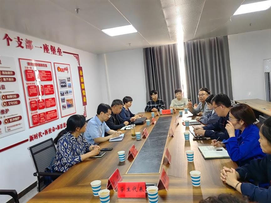 杨长春一行先后走访了鹤壁市信和药业有限公司、鹤壁全丰生物科技有限公司、鹤壁海格化工科技有限公司,详细了解生产经营、科技创新、企业用工、员工实习就业等情况。随后,又与鹤壁市信和药业有限公司、鹤壁全丰生物科技有限公司、鹤壁海格化工科技有限公司、鹤壁赛科化工有限公司、鹤壁瑞达化学科技有限责任公司、鹤壁蓝赛环保技术有限公司等企业代表进行座谈交流。在座谈中,杨长春表示公司将积极发挥自身优势服务鹤壁本地发展,为企业提供更多优秀毕业生。企业代表也介绍了自身情况及用工需求,并就员工代表提出的具体问题进行了详细解答。